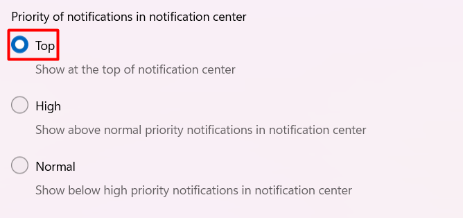 6.VálasszonFelsőaAz értesítések prioritása az értesítési központbanszakasz.