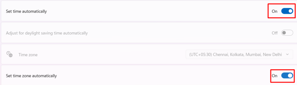 4.Váltás aVálassza ki az időt automatikusanésÁllítsa be az időzónát automatikusanopció.