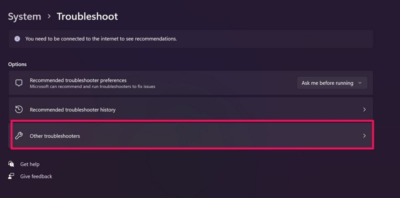 3.Kattintson aEgyéb hibaelhárítókgomb.