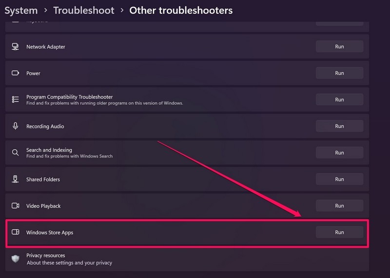 3. Futtassa a Windows Store alkalmazások hibaelhárítóját a Windows 11 -ben