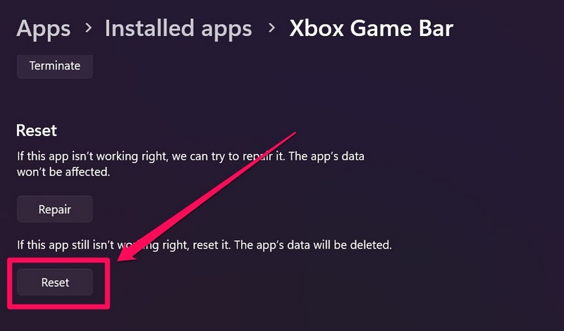 Most, ha a fentiek nem működtek, és továbbra is azt tapasztalja, hogy az Xbox Game Bar nem működik a Windows 11 kiadásában a számítógépen vagy a laptopján, próbálja meg javítani vagy visszaállítani az alkalmazást a Windows beállításokból. Nagyon könnyű megjavítani és/ vagy visszaállítani az Xbox Game Bar alkalmazást a Windows 11 -ben, és így lehet ezt megtenni a készüléken: