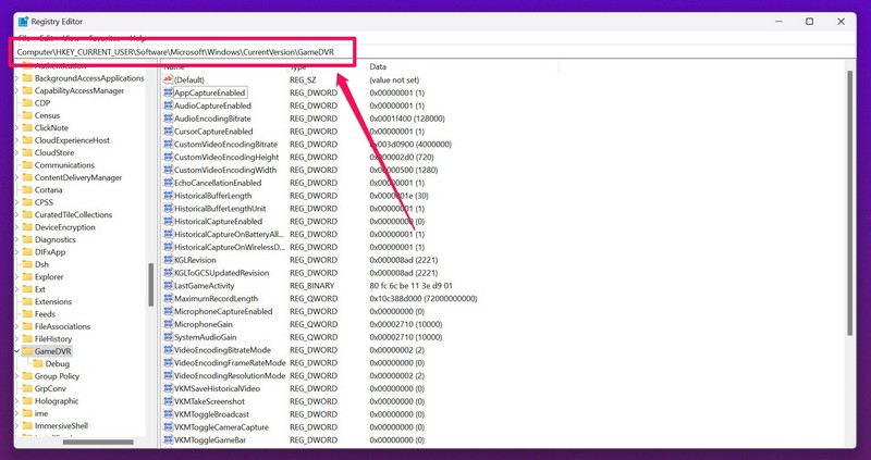 ComputerHKEY_CURRENT_USERSoftwareMicrosoftWindowsCurrentVersionGameDVR