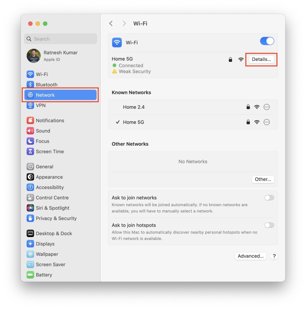 a bal oldalsávon, és a jobb oldali panelen válassza a Wi-Fi lehetőséget.Részletek4. Megtalálja a csatlakoztatott Wi-Fi hálózatot, kattintson a gombra