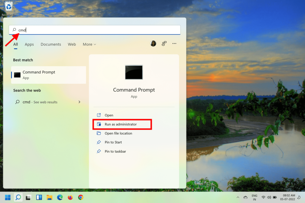 menü.Enter2.Írja becmda keresősávban, és nyomja meg
