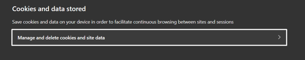 3.VálasszonA sütik és a webhelyadatok kezelése és törléseÉs kattintson aTekintse meg az összes sütit és a webhely adatait-