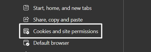 2.Válassza ki aBeállításokopció a legördülő menüből, és menjen aSütik és helyszíni engedélyekszakasz.