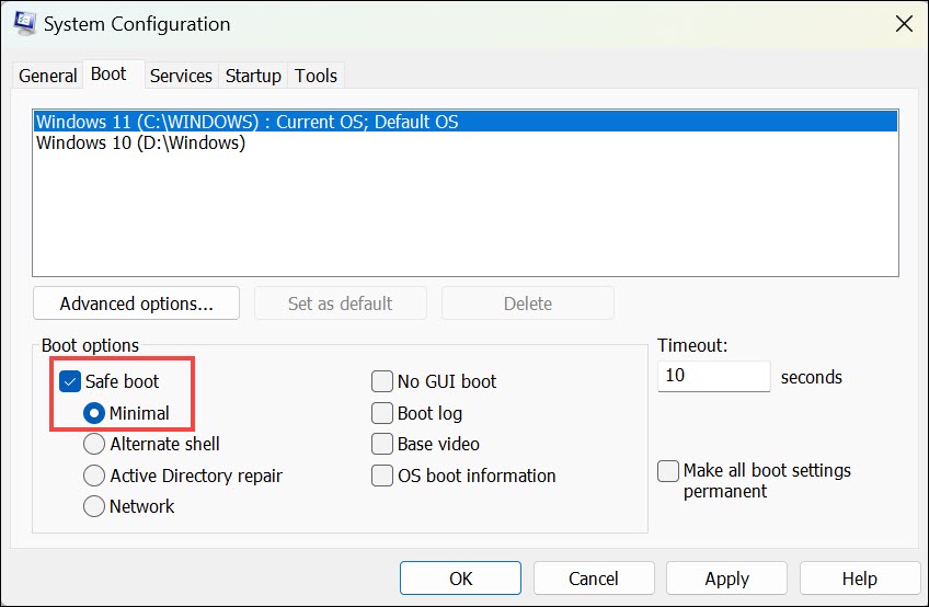 4.Válassza ki aAlkalmazgombra, majdRENDBENA módosítás alkalmazásához és a biztonságos mód engedélyezéséhez.