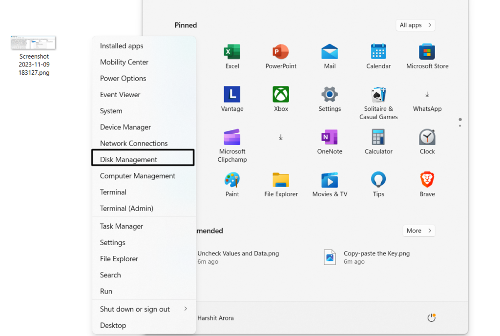 1.A Windows + X gyorsbillentyűvel nyissa meg aStart menüés válassza ki aLemezkezelésopció.