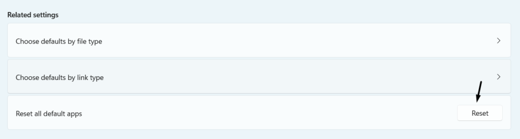 4.Miután elkészült, görgessen le a lehetőséghezÁllítsa vissza az összes alapértelmezett alkalmazástmajd kattintson a gombraResetmellette lévő gombot.