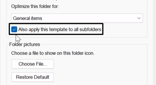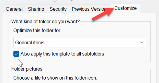 3.ATestreszabásfül, alattOptimalizálja ezt a mappát erre:, pipaAlkalmazza ezt a sablont az összes almappára is.