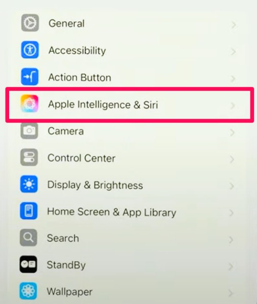 - Amikor az iDevice újraindult, menjen aBeállítások alkalmazás> Apple Intelligence & Siri.