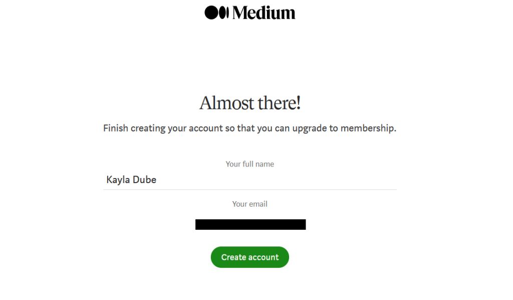 - Miután igazolta fiókját a választott módszerrel, megadhatja a használni kívánt nevet a Médiumon.