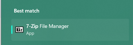 2.Kattintson rá7-Zip FájlkezelőalattLegjobb mérkőzésA keresési eredményeknél, hogy megnyithassák a 7-cipőt a PC-n.