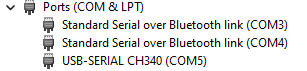 3.Arduino UNO kártyát használunk, és az eszközkezelőből láthatjuk, hogy csatlakozik aCOM5kikötő. Ha másik eszközt használ, és nem biztos a portot illetően, távolítsa el a mikrokontrollert, és csatlakoztassa újra, hogy megtudja, melyik portot használja.
