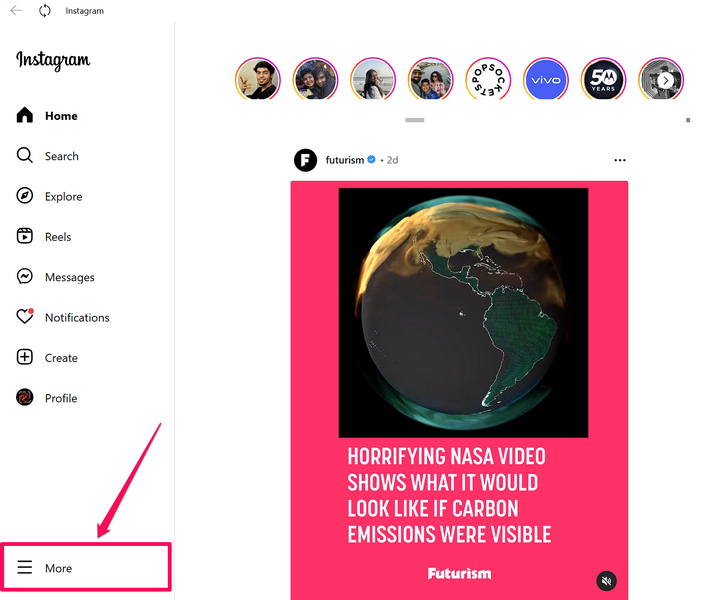 1.Míg a Windows 11 PC -n vagy a laptopon található Instagram alkalmazásban kattintson aTöbbOpció a bal oldali navigációs sávon.
