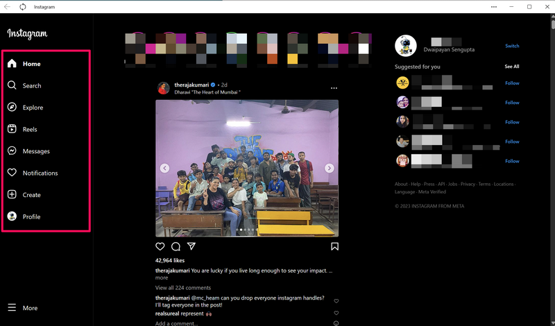 Miután rákattintott a bejelentkezési gombra a More menüben, azonnal bejelentkezik az Instagram -fiókjából a Windows 11 PC -n vagy a laptopján. Visszatéréshez lásd az előző Hogyan jelentkezzen be az Instagram -ba a cikk Windows 11 szakaszában.