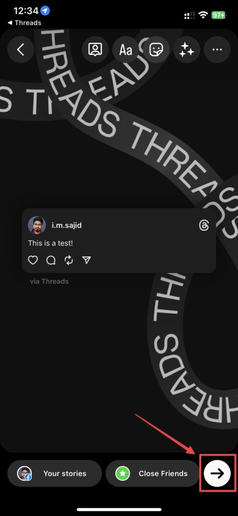 4.CsapRészesedéshogy hozzáadja a szálat Instagram-történetéhez.