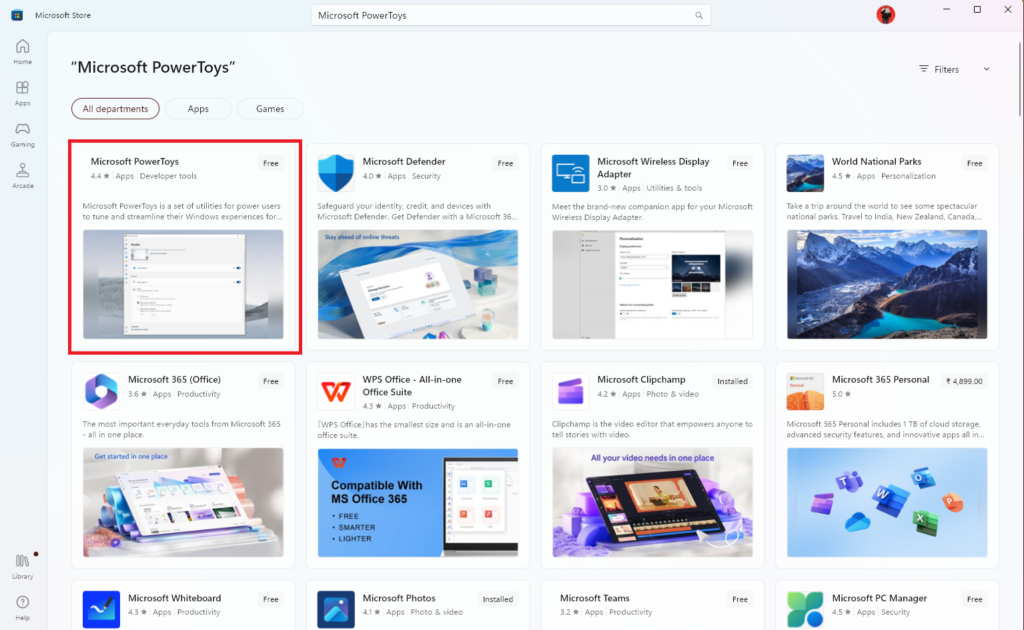 A Microsoft Store a legmegbízhatóbb hely az alkalmazások letöltésére a Windows PC -hez. Kövesse ezeket a lépéseket a PowerToys telepítéséhez a Microsoft Store -ból: