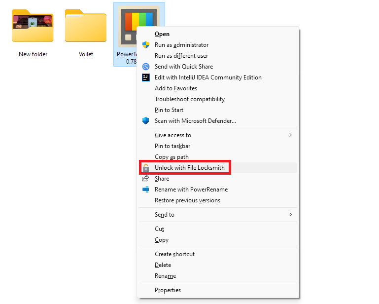A szerszám engedélyezése után végezze el aVáltás+Jobb egérgomlóképésa fájlban, és válassza ki aNyissa ki a fájl lakatossalopció. Most a PowerToys megnyitja a Windows -t, és ott láthatja a fájlt használó alkalmazás vagy folyamat.