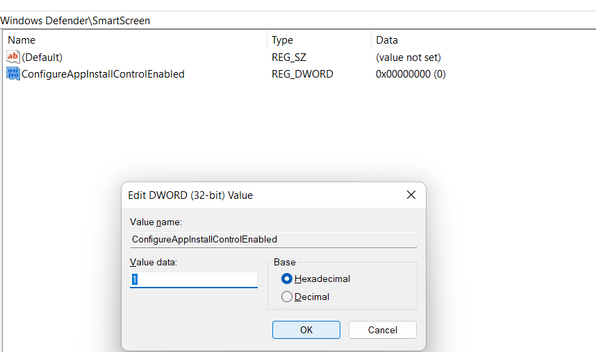 HKEY_LOCAL_MACHINESOFTWAREPoliciesMicrosoftWindows DefenderSmartScreen