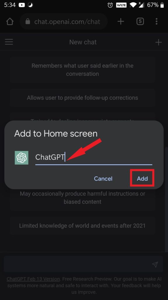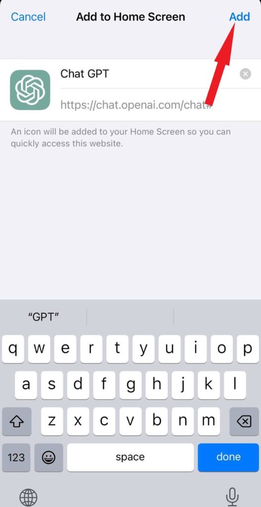 - Ezután lépjen beChatGPTa megadott név mezőben, majd nyomja meg a gombotHozzáadásgomb.