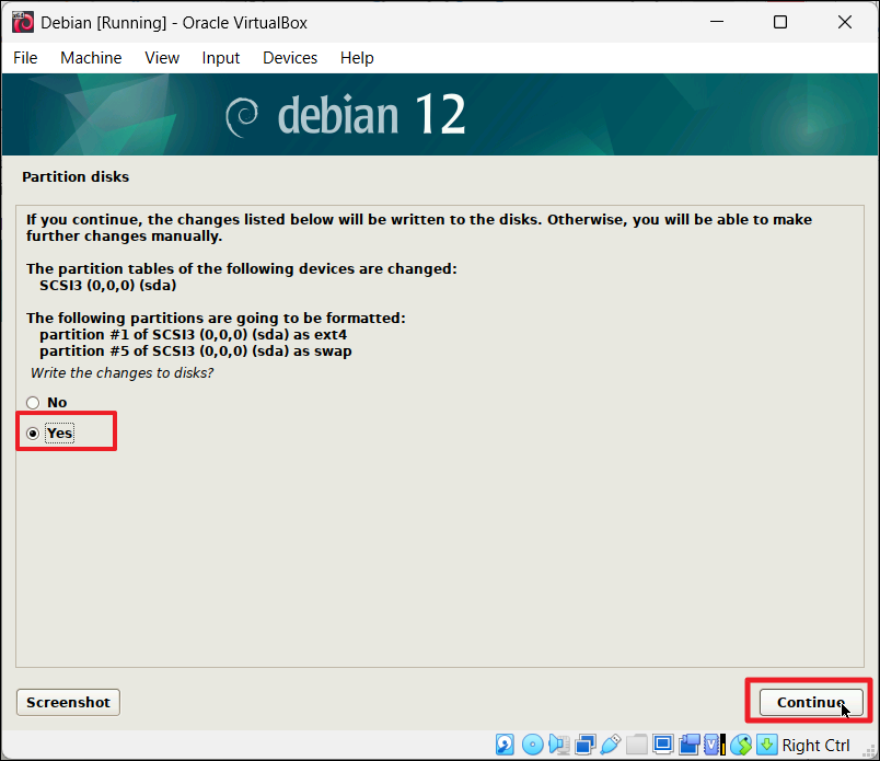 4. Kattintson a „Igen"-IgÍrja meg a lemez változtatásait?Opció, és kattintson a “Folytatódik„.