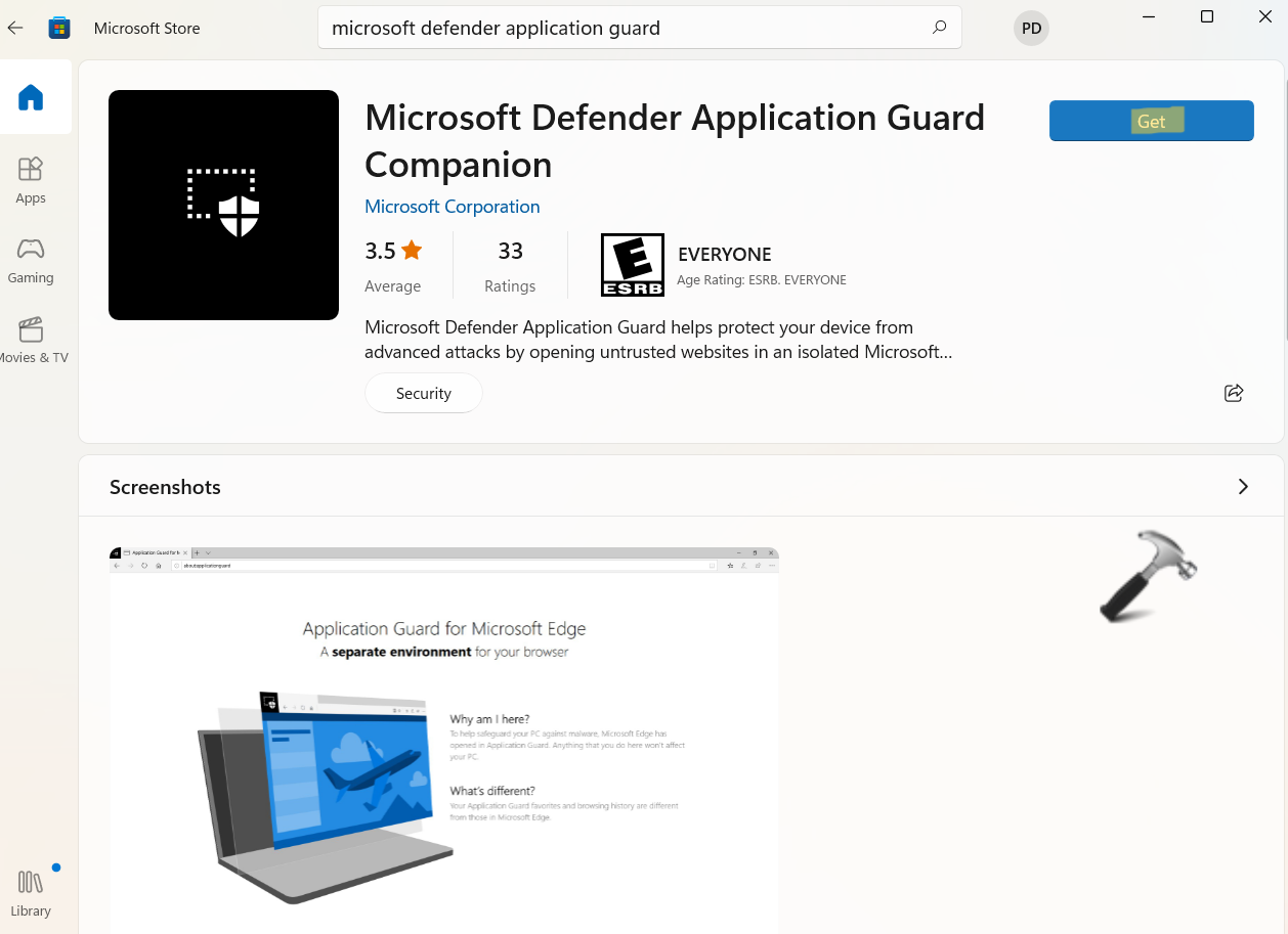 - NyitottMicrosoft Storeés keresdMicrosoft Defender Application Guard.