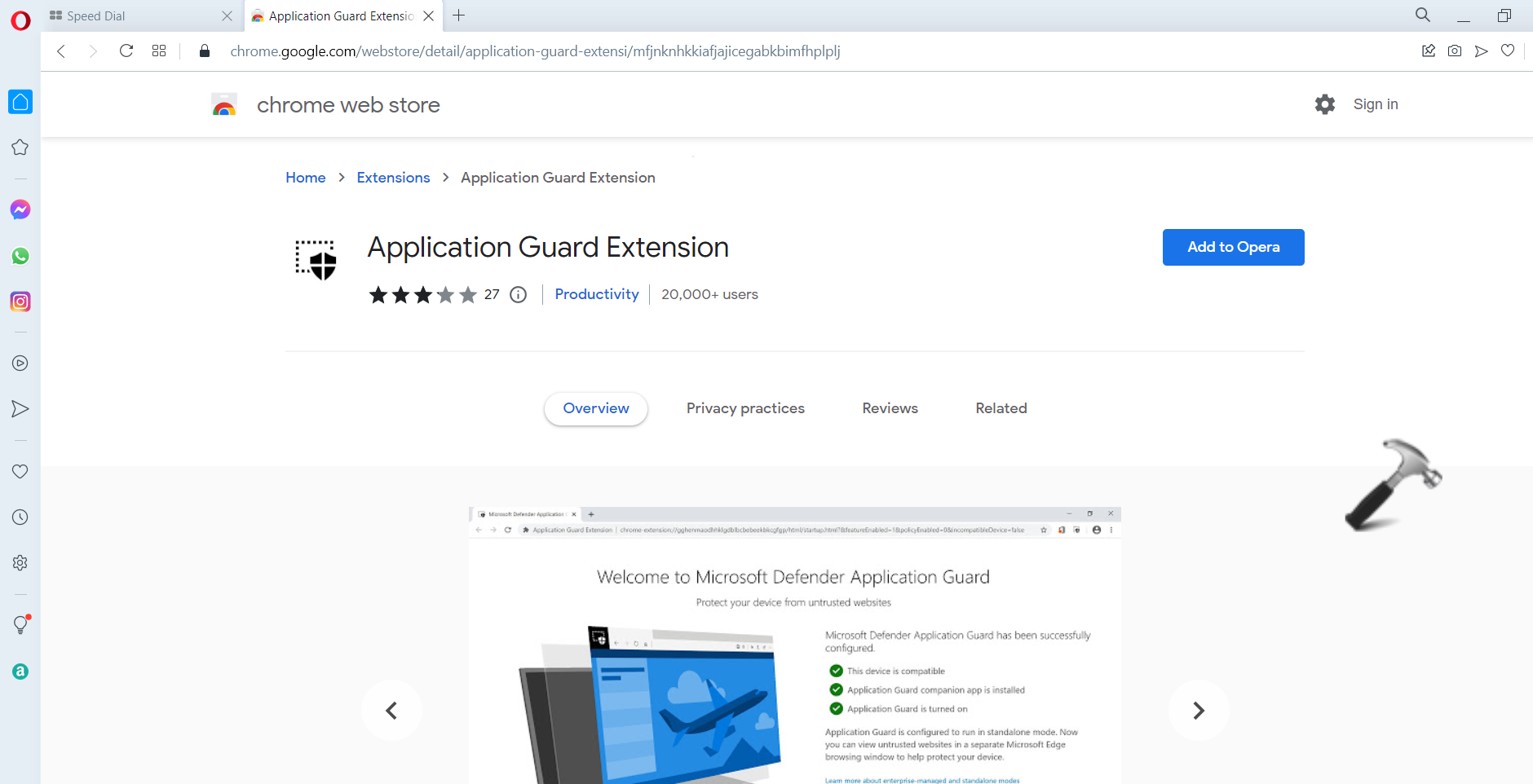 - Keresse fel a Chrome internetes áruház oldalát, és keresse megApplication Guard kiterjesztés.