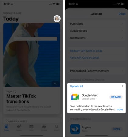 Ha alacsony teljesítményű üzemmódban tartózkodik, az automatikus letöltések le van tiltva. Az alkalmazások nem frissülnek automatikusan a háttérben. Ha azonban bizonyos alkalmazásokat kell frissítenie, mert hibásnak tűnnek, akkor elmehetApp Store→Beszámoló- Görgessen lefelé, keresse meg a frissíteni kívánt alkalmazást, és koppintsonFrissít-