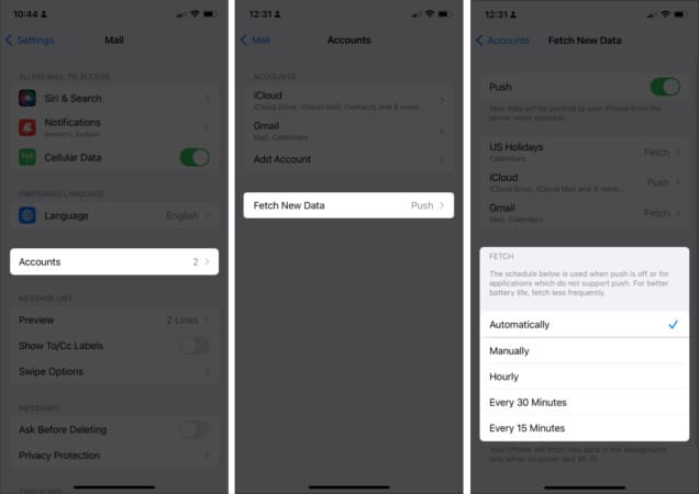 Ha konfigurálta az e -mail fiókjait, hogy néhány percenként vagy automatikusan új adatokat szerezzen a háttérben, az iPhone rendszeres időközönként új leveleket tölt be és tölt be új leveleket.