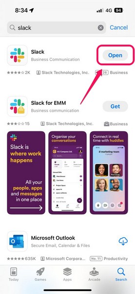 Ha azonban valaki elég ügyes ahhoz, hogy megkeresse az Ön által elrejtett alkalmazást iPhone-ján az App Store-ban, akkor megtudja, hogy az Ön birtokában van, mivel az alkalmazás listája megjelenik aNyitás gombhelyett aLetöltés gomb. Ezért ügyeljen erre, amikor elrejt egy alkalmazást iPhone-ján az iOS 18 rendszerben.
