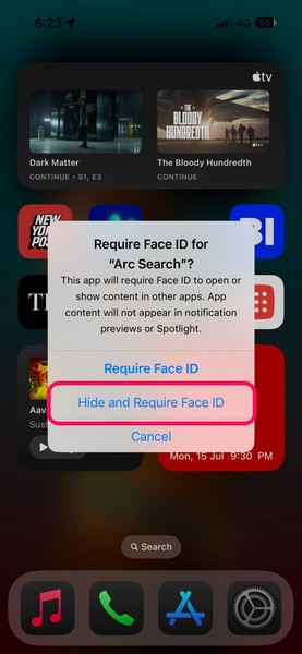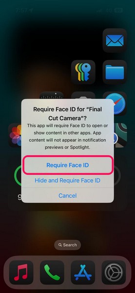 2.A következő promptban érintse meg aArcazonosító szükségesopció. Akkor az iPhoneolvassa be az arcát (vagy ujjlenyomatát) a hitelesítéshezés engedélyezze az alkalmazászárat.