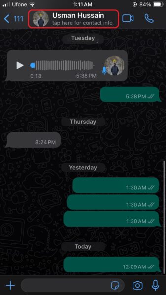 - Érintse meg a CHAT ablak tetején található névjegy nevét.