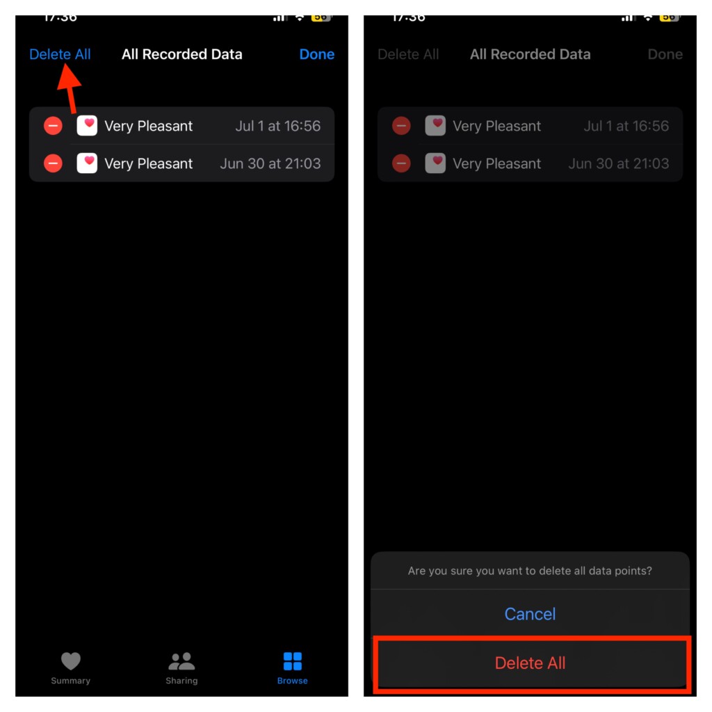 Törölje az elme naplóit az egészségügyi alkalmazásban az iPhone -on