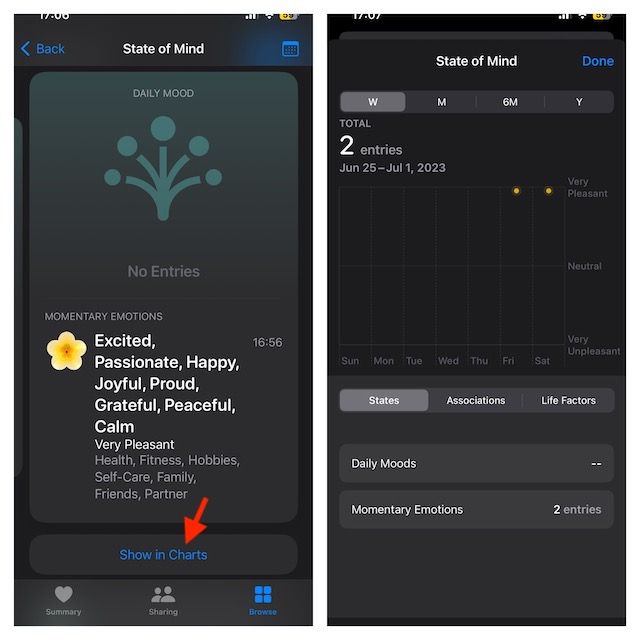 Ellenőrizze a naplózott hangulatokat és érzelmeket az egészségügyi alkalmazásban az iPhone -on az iOS 17 -ben