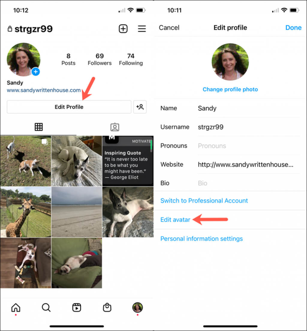 Lehet, hogy új frizurát vagy színt választottál, szakállat növesztettél, vagy új szemüveget vettél. Bármikor szerkesztheti Instagram-avatarját az alábbi módok egyikével: