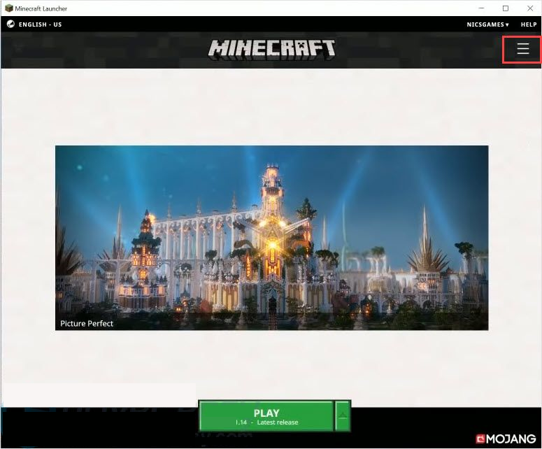 - Most nyisd kiMinecraft, majd kattintson a három vízszintes vonallal jelölt ikonra a jobb felső sarokban.