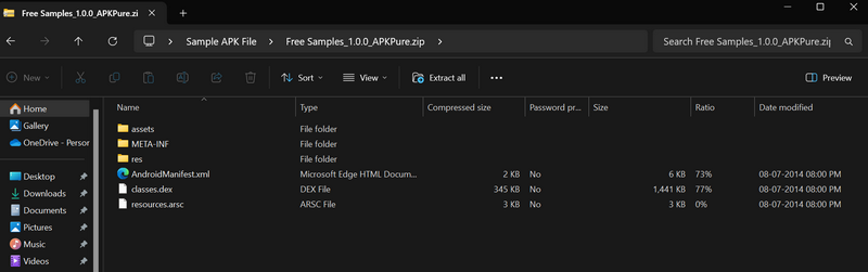 Az Android Packaging Kit vagy APK fájlok nagyon hasonlóak a ZIP vagy a RAR fájlokhoz. Hasonlóan a .rar vagy .zip fájlokhoz, a .apk fájlok tömörített adatokat és információkat tartalmaznak az Android alkalmazásokhoz és játékokhoz kapcsolódóan, amelyek a megfelelő eszköz segítségével kinyerhetők tőlük. Ez lehetővé teszi az APK fájlok kézi konvertálását a Windows 11 ZIP fájlokra, hogy megtekintsék és ellenőrizzék azok tartalmát a File Explorer -ben.