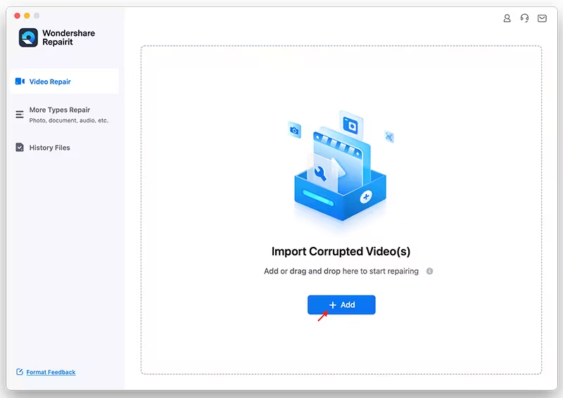 2. lépés - Add hozzáMegsérült videó vagy húzás és dobás sérült videókat a felületre.