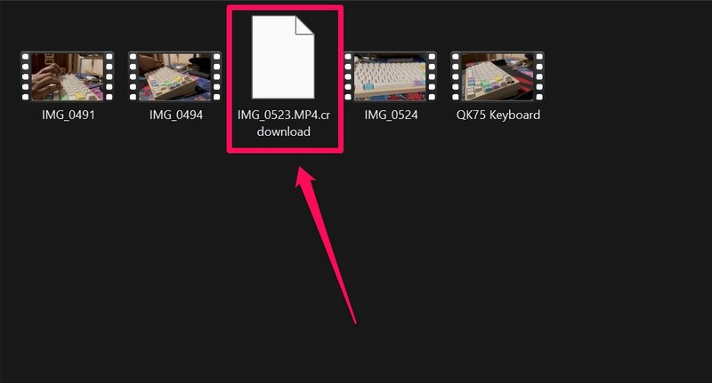 Ebben a példában láthatja, hogy az eredeti fájl neve azImg_0523.mp4És a CRDownload fájl neve a Windows 11 PC -n vagy a laptopomonImg_0523.mp4.crdownload-