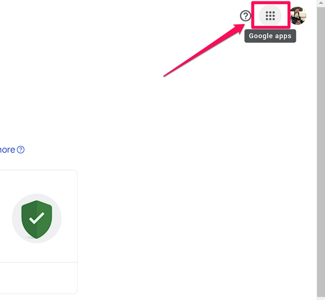 3.AGoogle Fiók honlapja, kattintson aGoogle Apps gombA profil ikonja mellett a képernyő jobb felső sarkában.