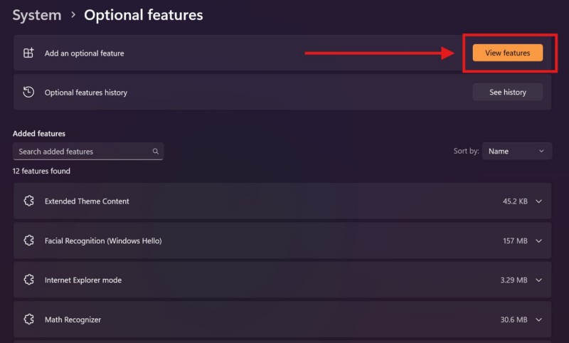 8.A következő oldalon kattintson aTekintse meg a funkciók gombotaAdjon hozzá egy opcionális szolgáltatás lehetőséget-