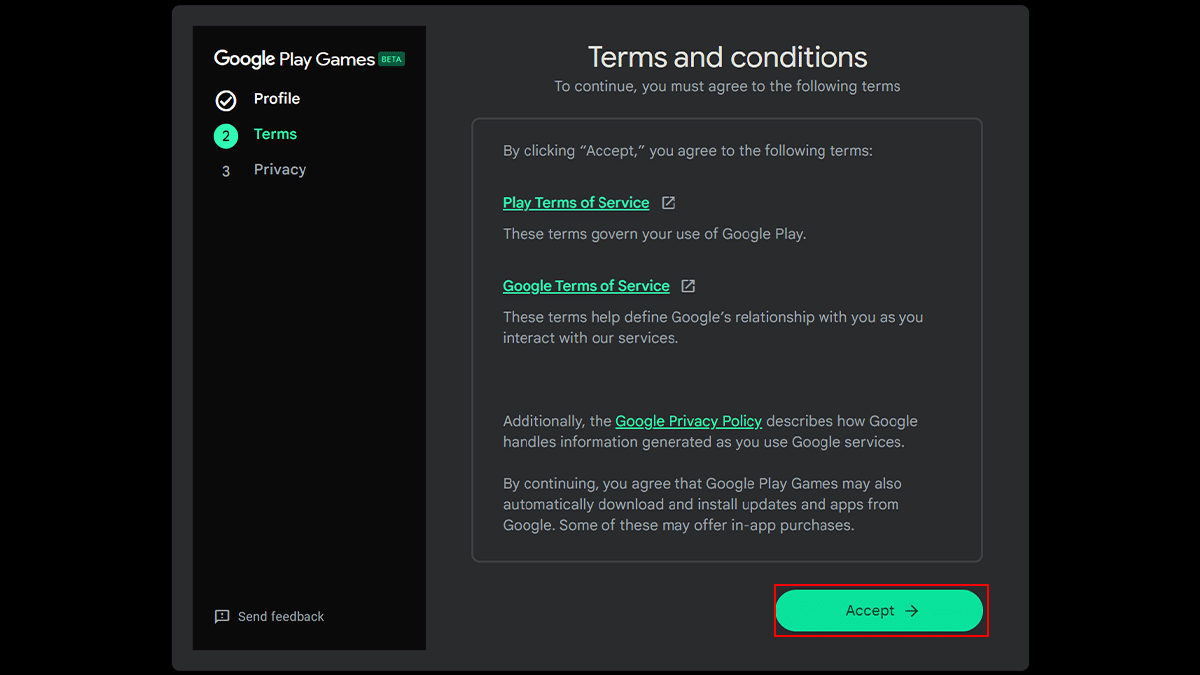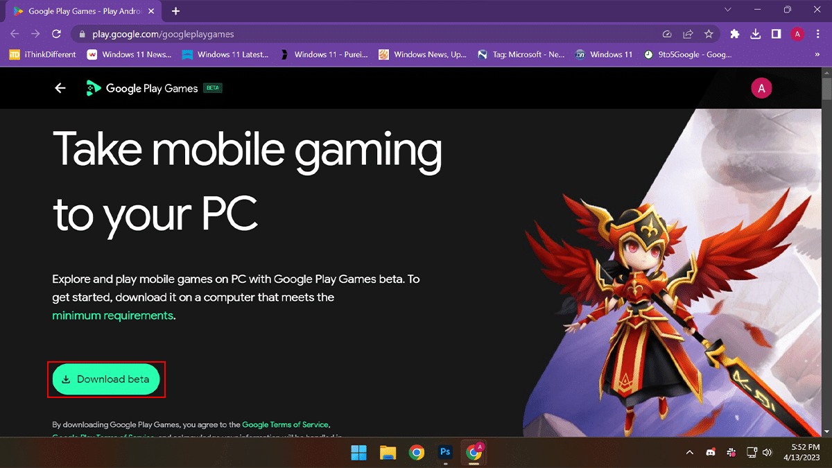 - NyitottGoogle Play Games(web)> Kattintson aLetöltés bétagomb a telepítő letöltéséhez.