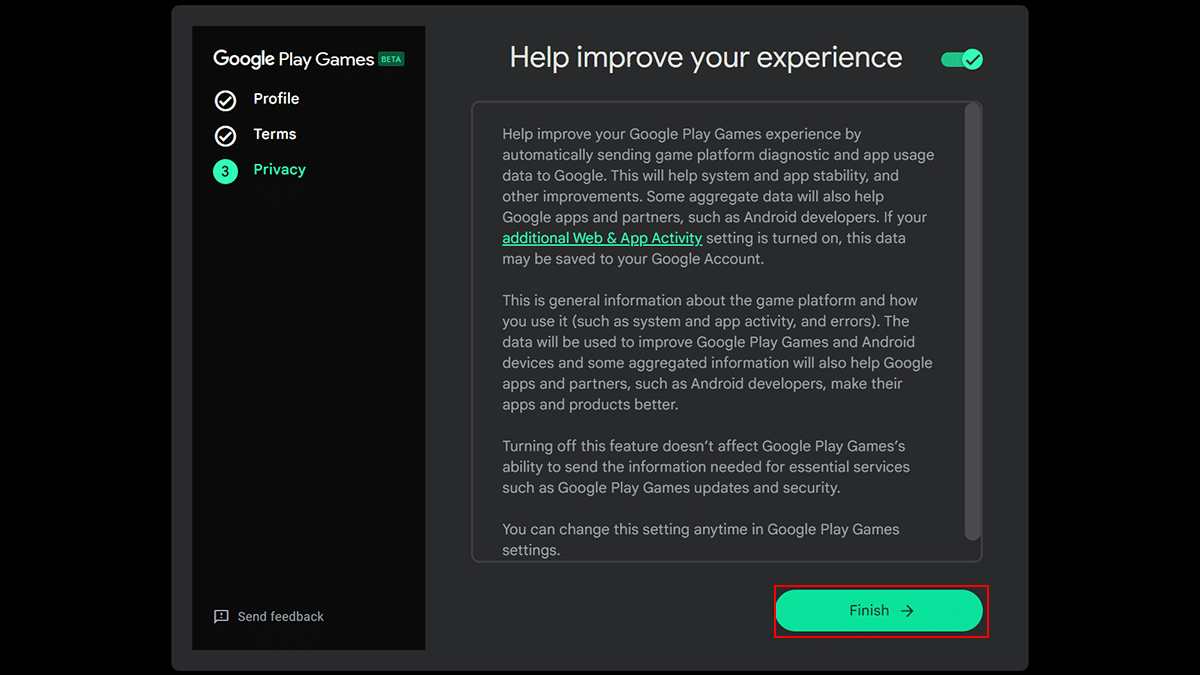 - Kattintson aBefejezgomb az adatvédelmi feltételek elfogadásához.