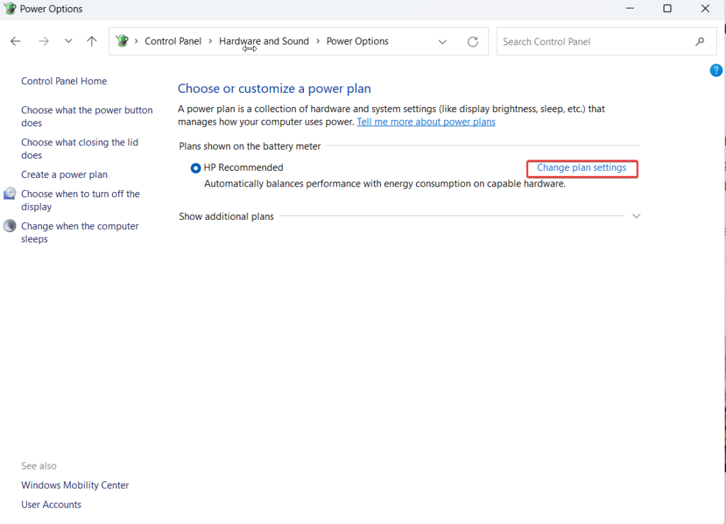 5. Kattintson a gombraMódosítsa a Speciális Teljesítménybeállításokat-
