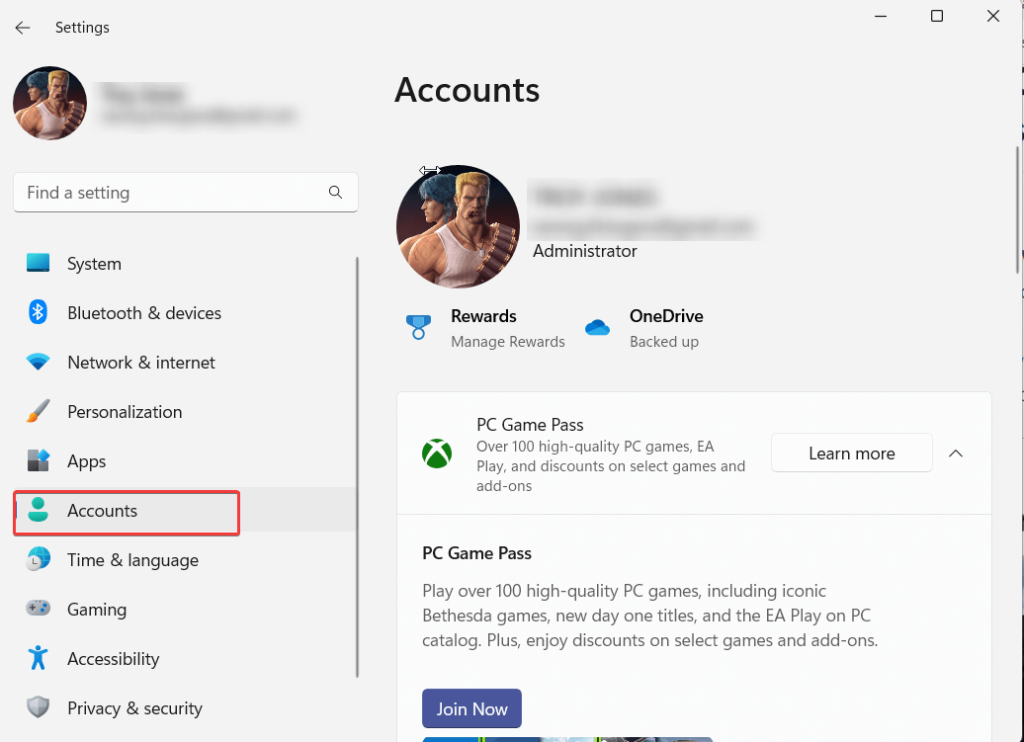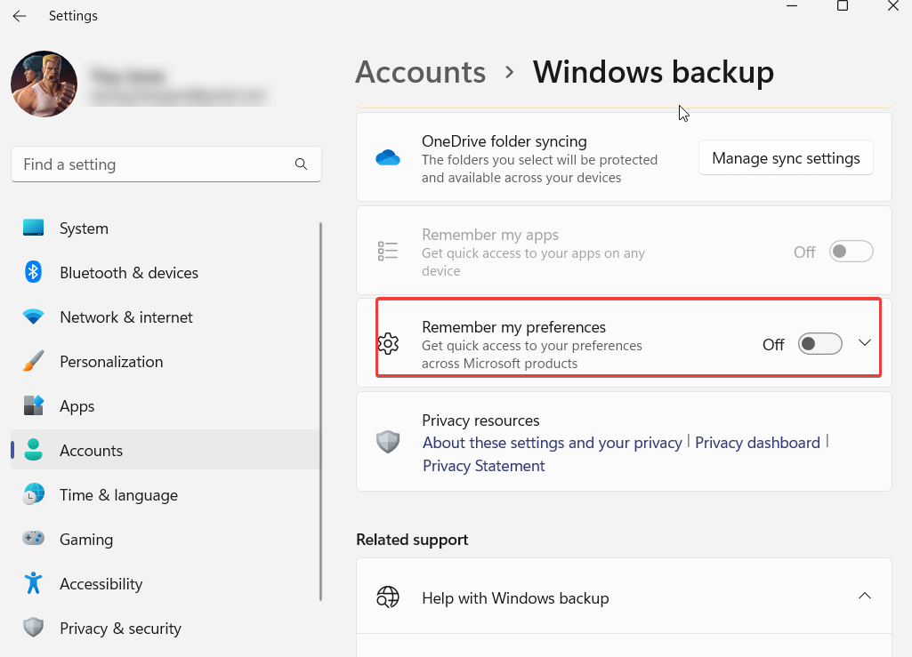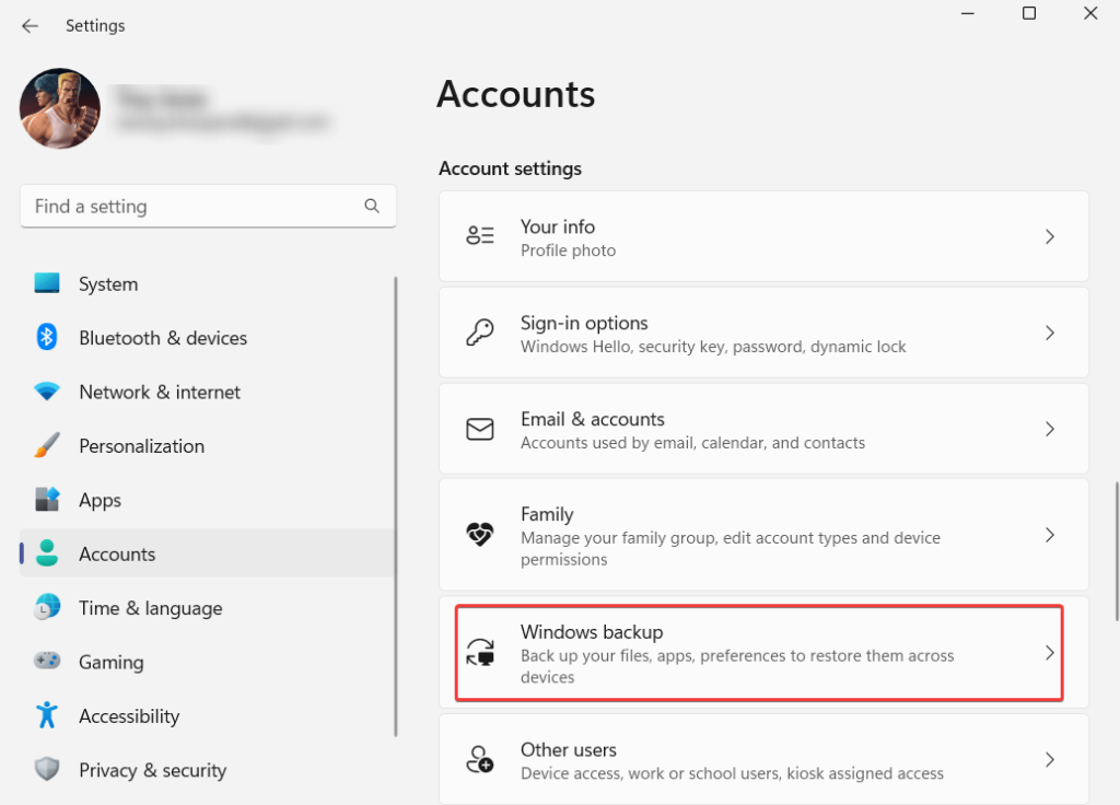 3.Fiókbeállítások, kattintson aWindows biztonsági mentés-