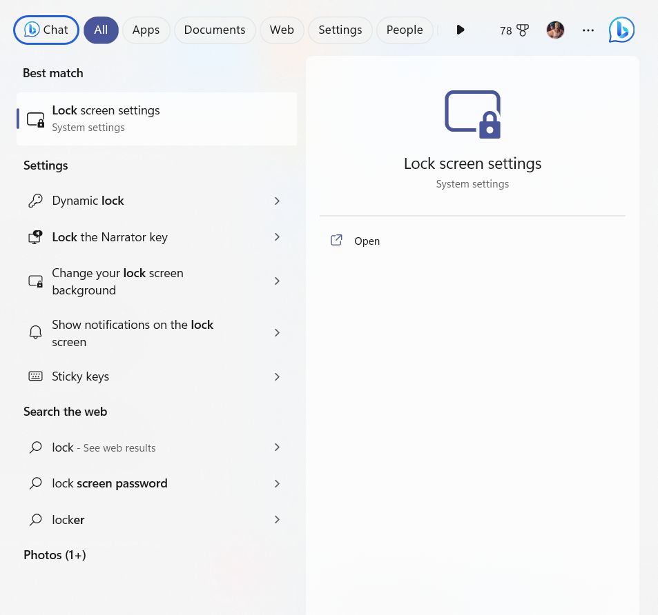 1. A Windows keresőjelben típusaA képernyő beállításainak zárolásaÉs kattintson a KattintsonNyitottjobbról.