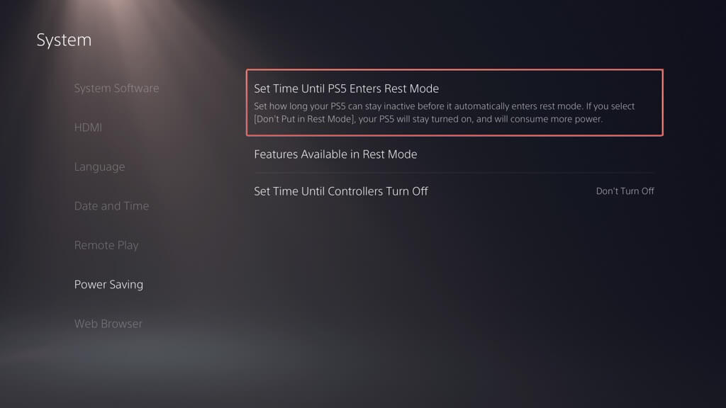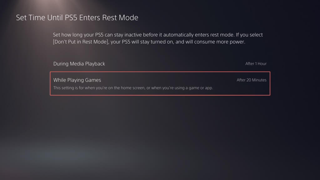 Ha módosítani szeretné, hogy a PS5 milyen gyorsan lépjen be a csökkentett módba: