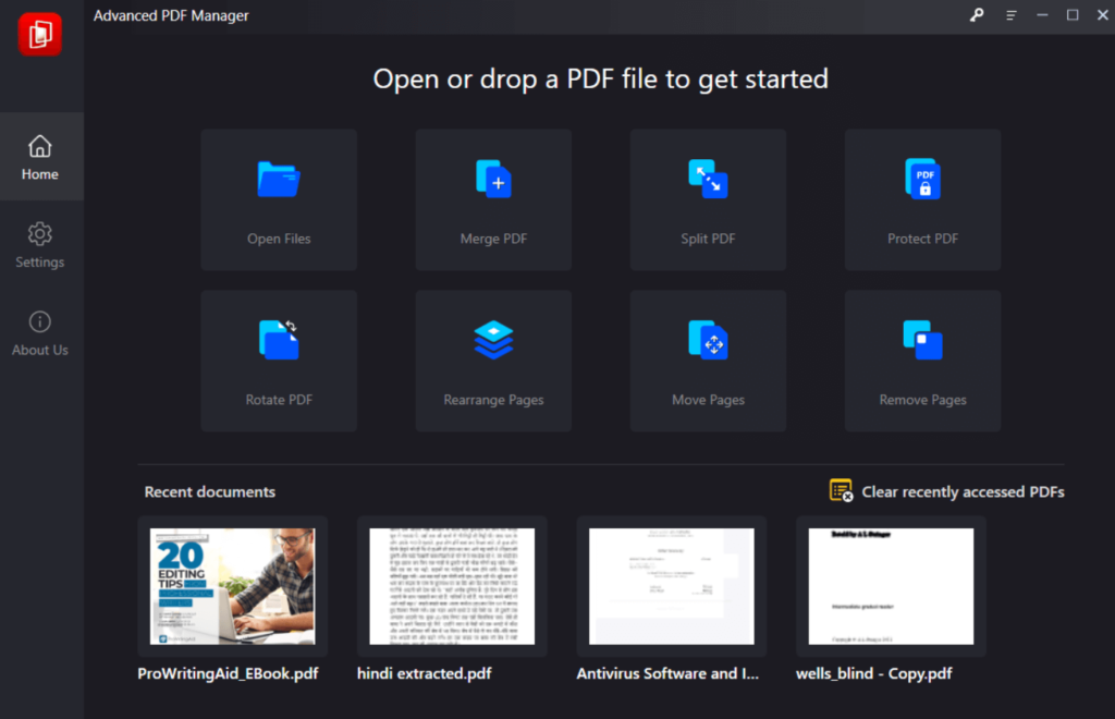 Ha ilyen feladatok vannak a fejében, az Advanced PDF Manager PDF-kezelő eszköz felel meg a legjobban az Ön igényeinek. Ha csupán a kezelőfelületet nézi, megbizonyosodhat arról, milyen egyszerű a PDF-ek kezelése ezzel az eszközzel.