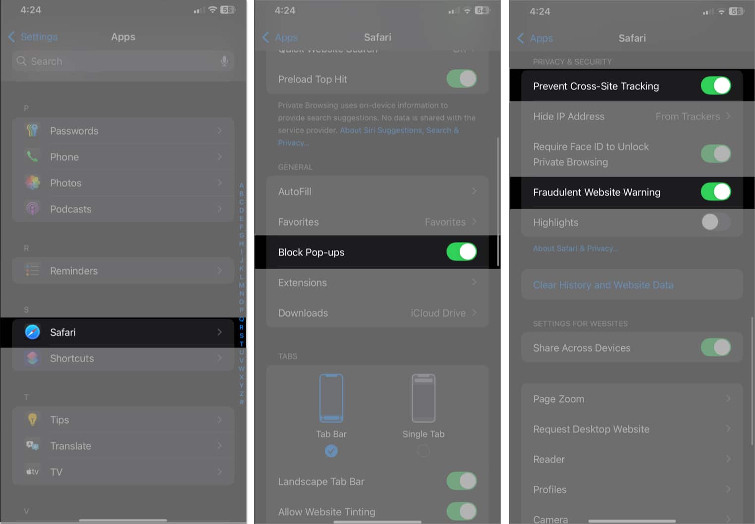 Az Apple egy funkciót kínál az előugró ablakok blokkolására, hogy megakadályozza a hamis biztonsági figyelmeztetések megjelenését az iOS rendszerben. Kövesse az alábbi lépéseket, hogy engedélyezze iPhone készülékén:
